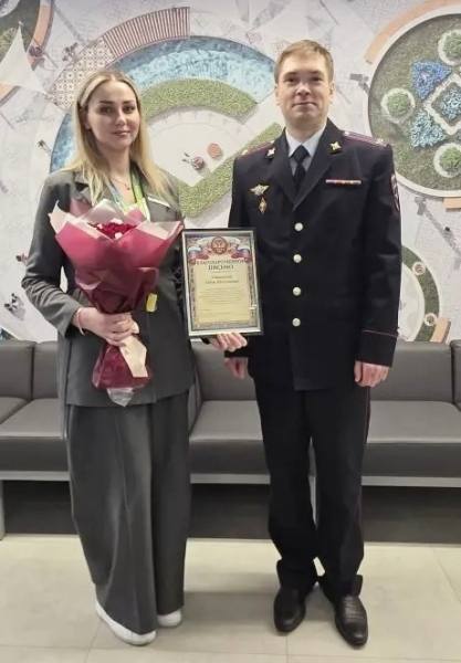 Начальник ОМВД России «Интинский» Святослав Рассказов поблагодарил сотрудницу банка Алёну Харук за бдительность и содействие органам внутренних дел в предотвращении мошенничества.