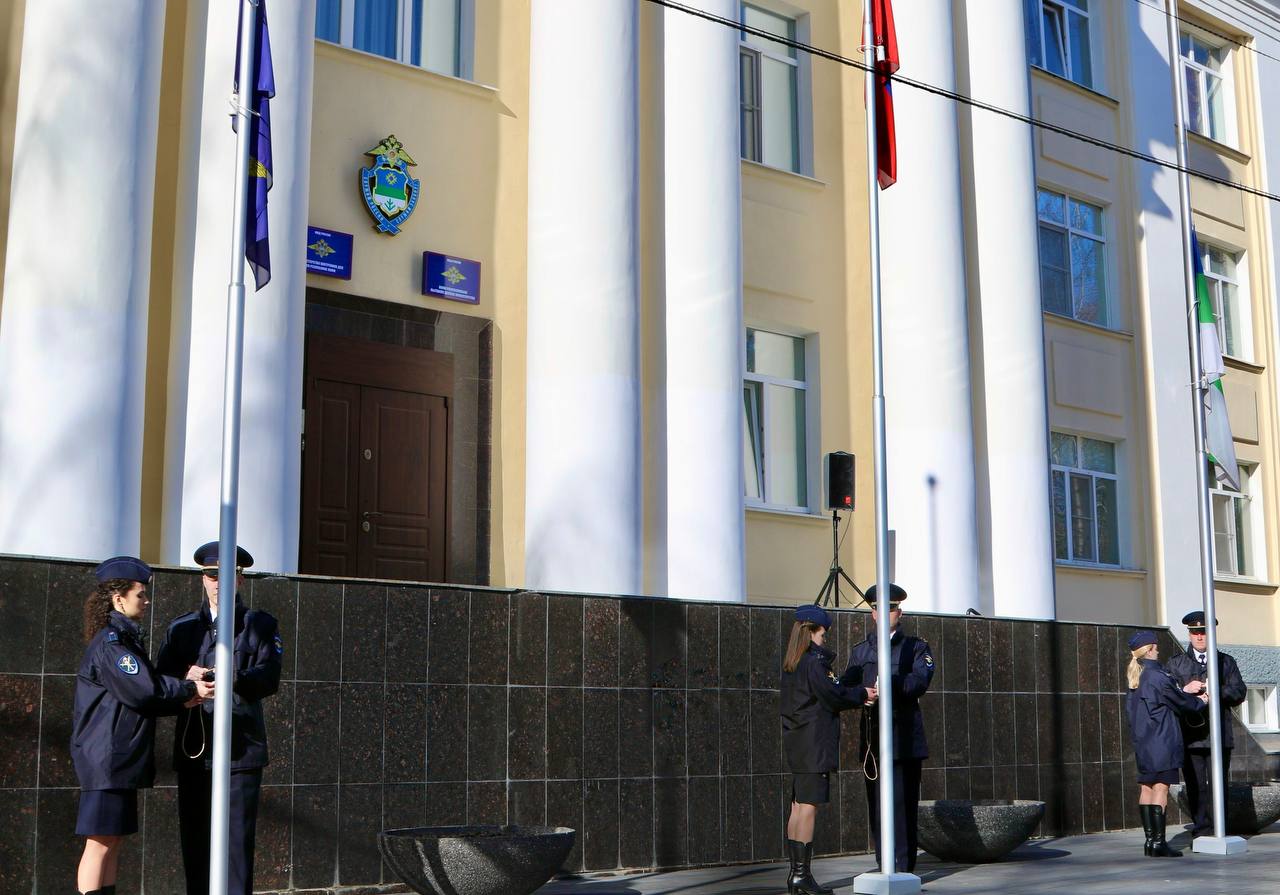По сложившейся традиции у здания ведомства состоялась церемония поднятия Государственного флага Российской Федерации, флага МВД России и Государственного флага Республики Коми.