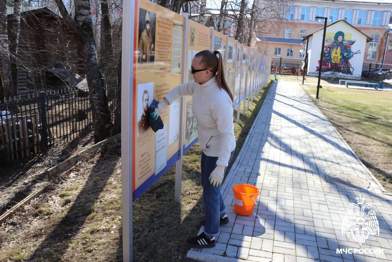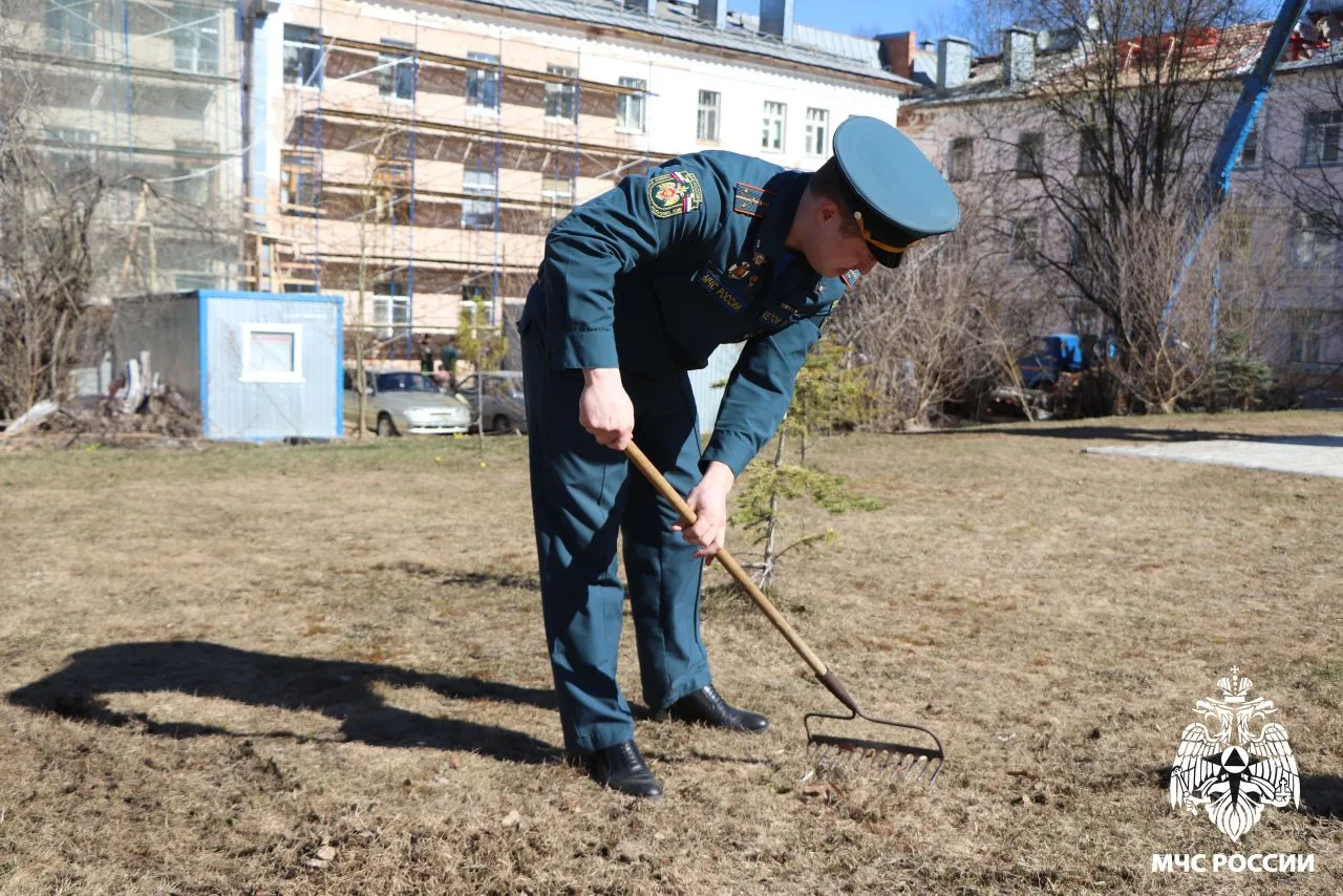 Члены Молодёжного совета Главного управления МЧС России по Республике Коми провели субботник на территории сквера пожарных и спасателей.