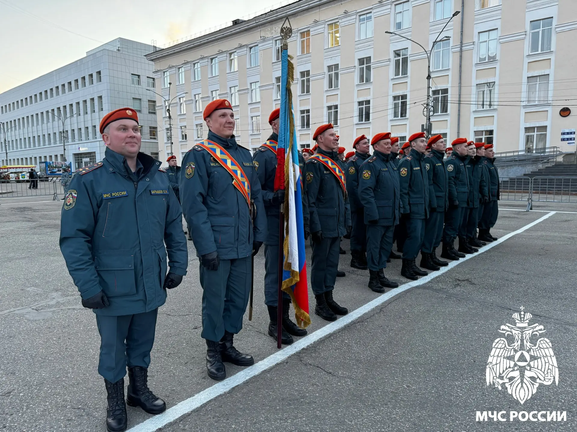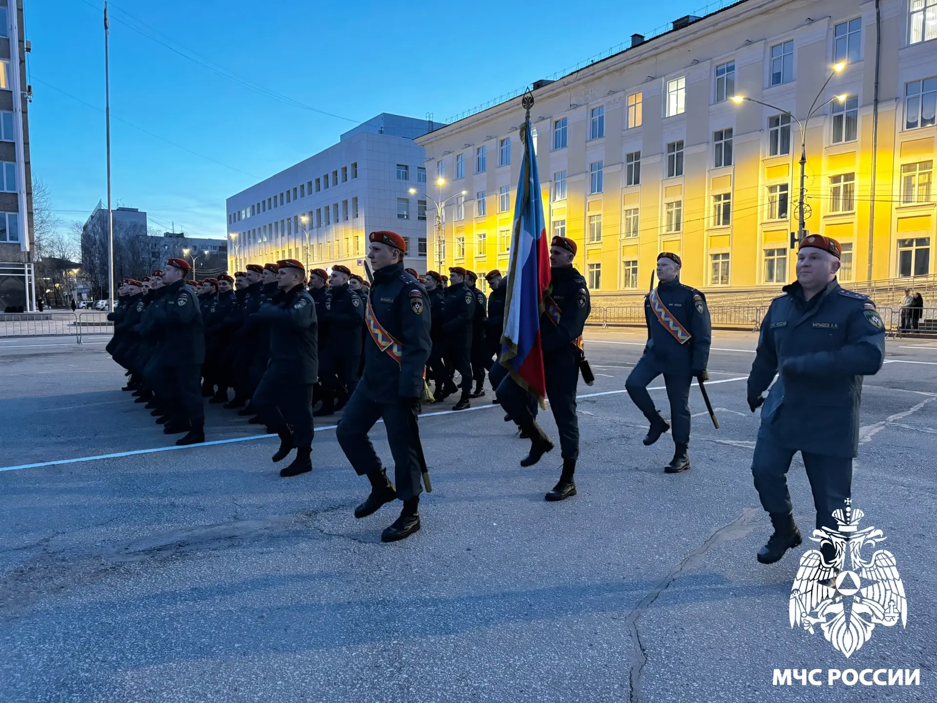 Сегодня сотрудники МЧС России по Коми приняли участие в репетиции парада, посвященного 81-й годовщине Победы в Великой Отечественной войне.