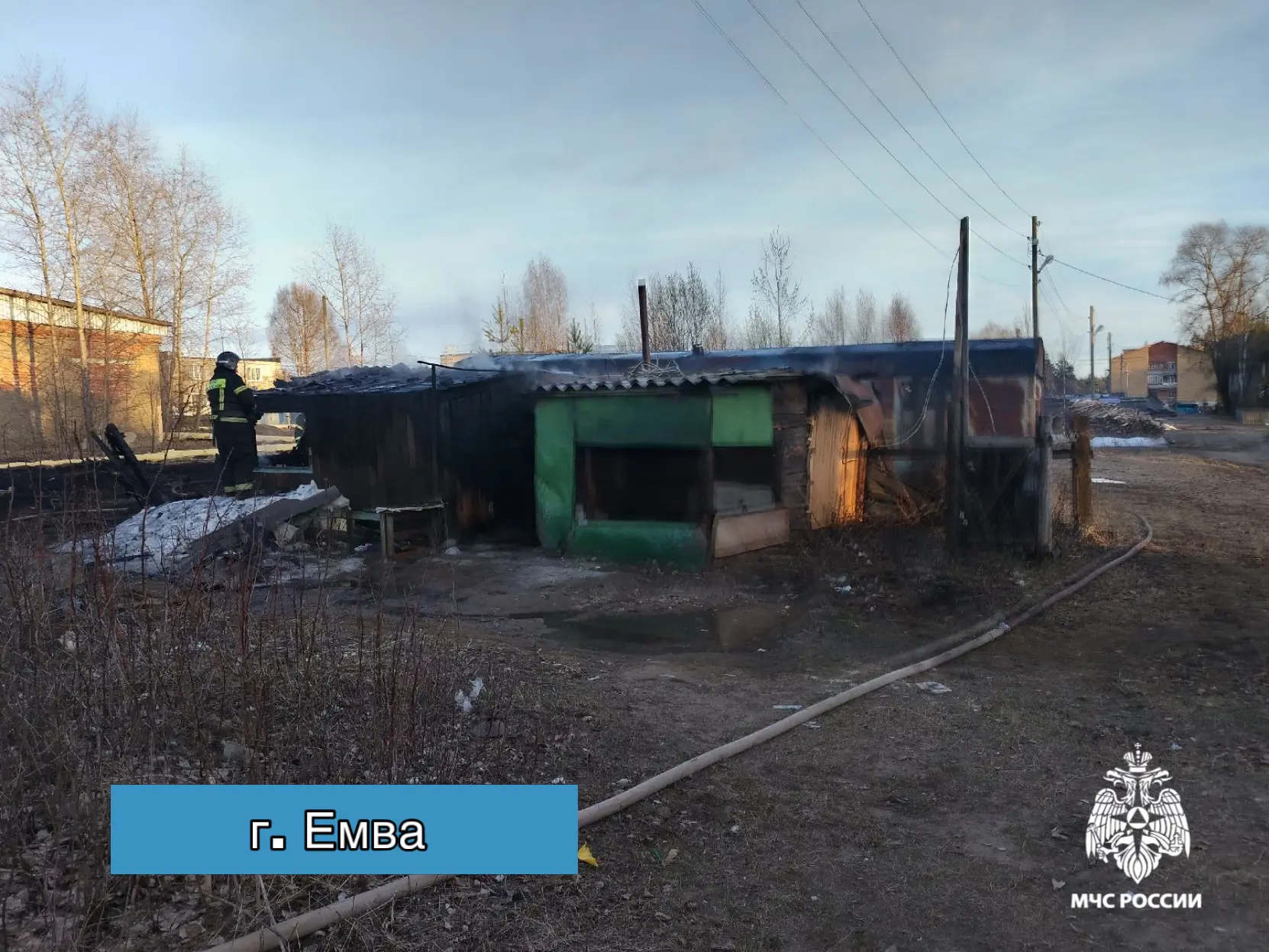 г. Емва, возгорание хозпостройки по улице 60 лет Октября ликвидировано на общей площади 40 квадратных метров. Предварительная причина пожара – неосторожное обращение с огнем.