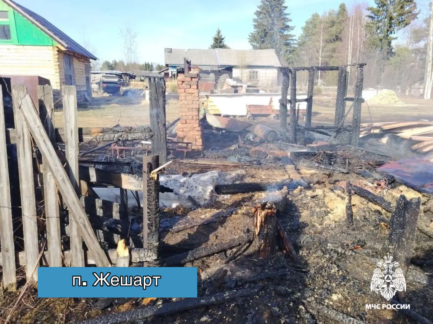 п. Жешарт, возгорание хозяйственной постройки по улице Пионерская ликвидировано на площади 100 квадратных метров. Предварительная причина пожара – неосторожное обращение с огнем.
