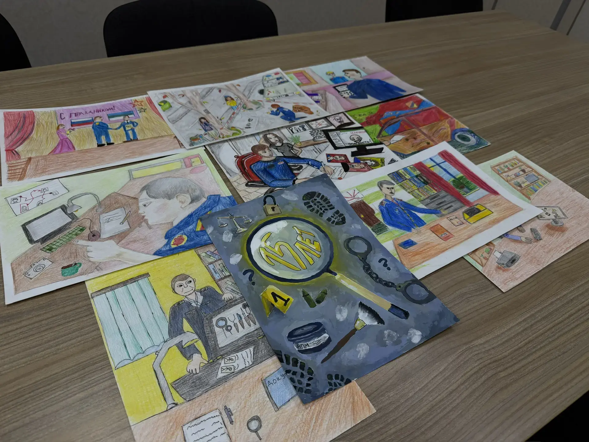 В год 15-летия образования ведомства работы посвящены теме – «По велению долга: 15 лет на страже Закона». В номинации «Изобразительное искусство» участниками из первой возрастной категории (8-14 лет) были представлены 10 работ.