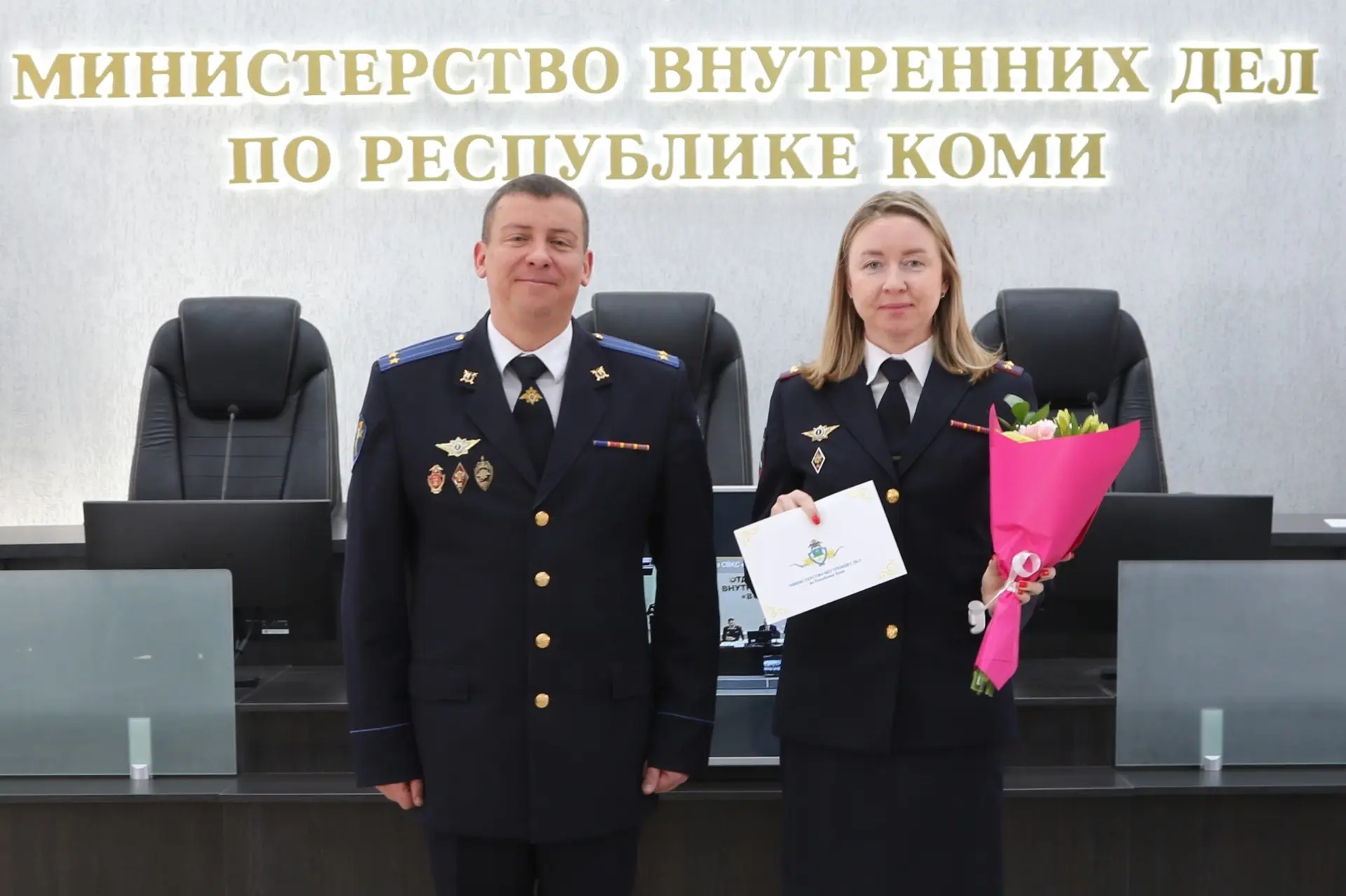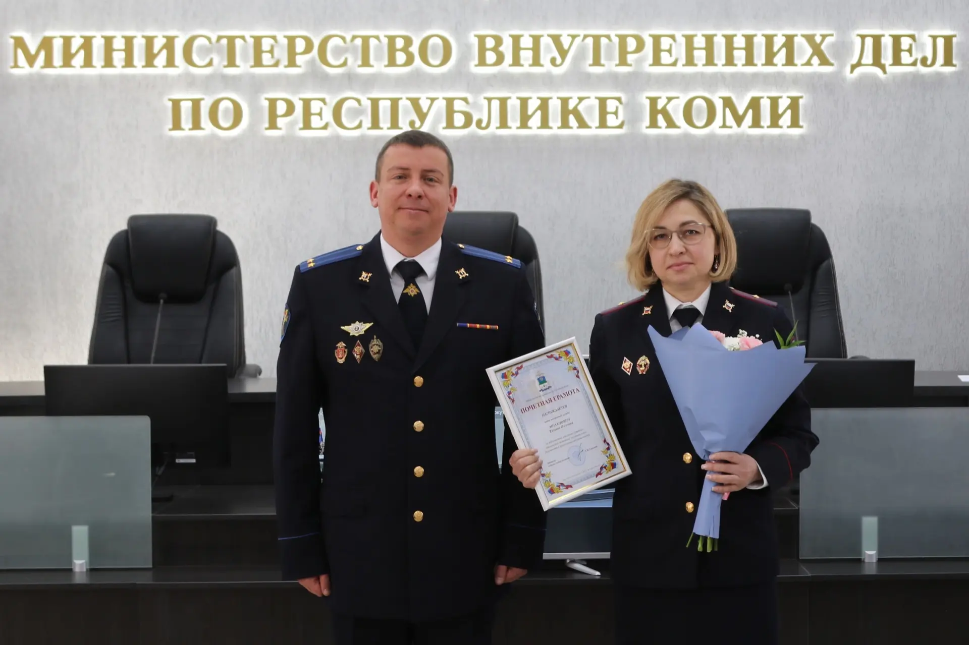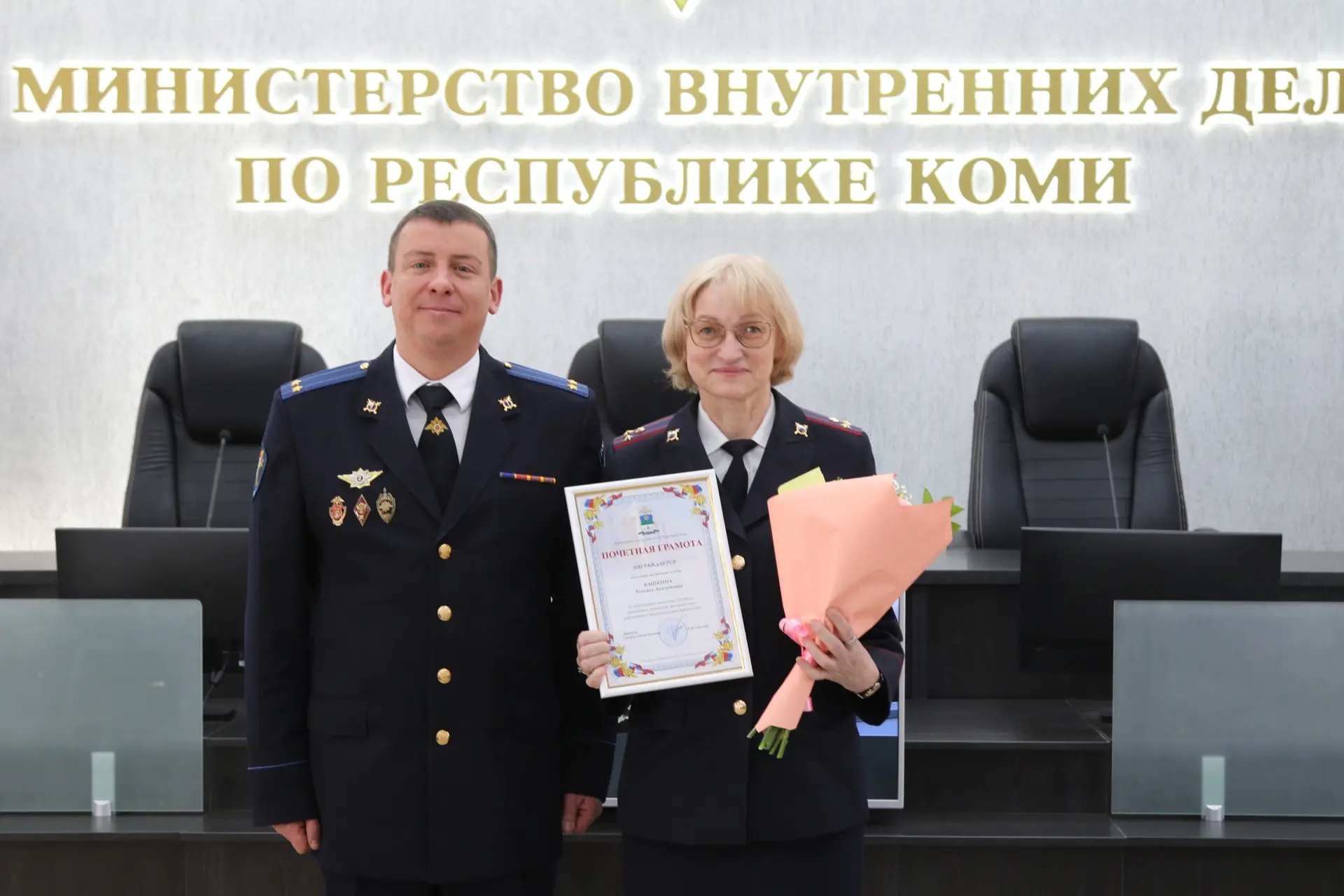 В Сыктывкаре в большом зале МВД по Республике Коми представителей правового отдела поздравил заместитель Министра внутренних дел по Республике Коми – начальник следственного управления Александр Калиниченко. Почётной грамотой МВД по Республике Коми награждена начальник отдела Татьяна Кашкина. Ряду сотрудников также вручены Почётные грамоты МВД по Республике Коми, благодарности Министра внутренних дел по Республике Коми и ценный подарок.