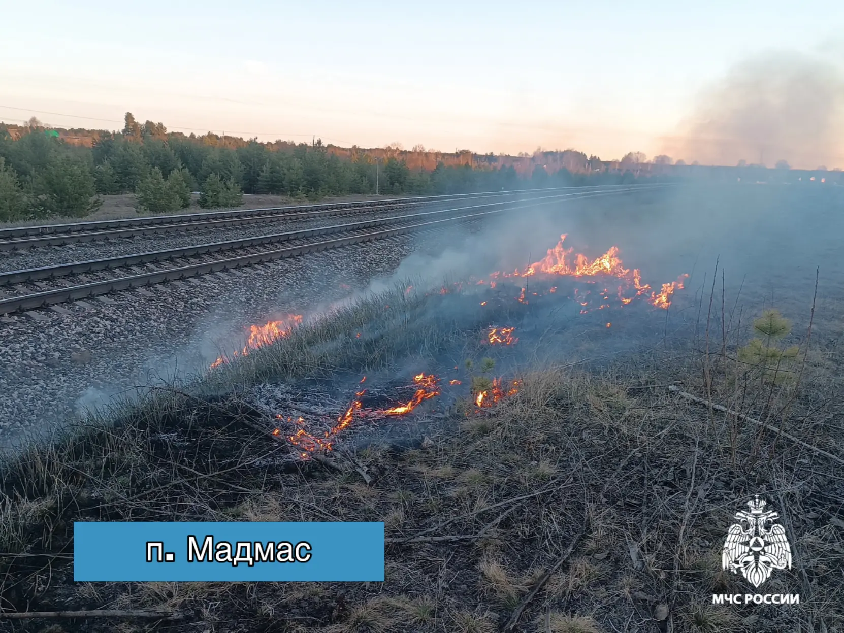 п. Мадмас, возгорание сухой травы ликвидировано на площади 120 квадратных метров. Предварительная причина пожара – неосторожное обращение с огнем.
