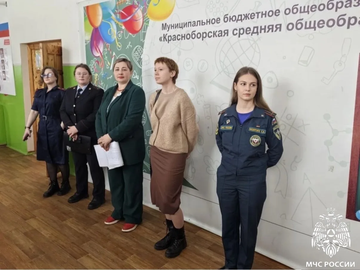 Инспектор МЧС России Екатерина Назаренко провела в Красноборской школе уроки безопасности для 1-х и 9-х классов.