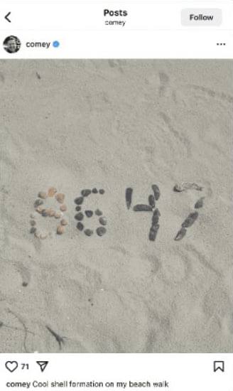 Речь идёт о прошлогоднем посте в Instagram*, где Коми опубликовал фото ракушек, выложенных в форме цифр «8647», сообщил корреспондент Fox News Билл Мелугин.