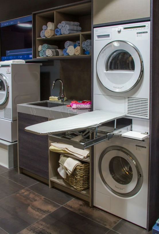 Комбинированное размещение сушильной машины сверху на стиральной — не просто модный тренд, а реальная находка с множеством преимуществ:
