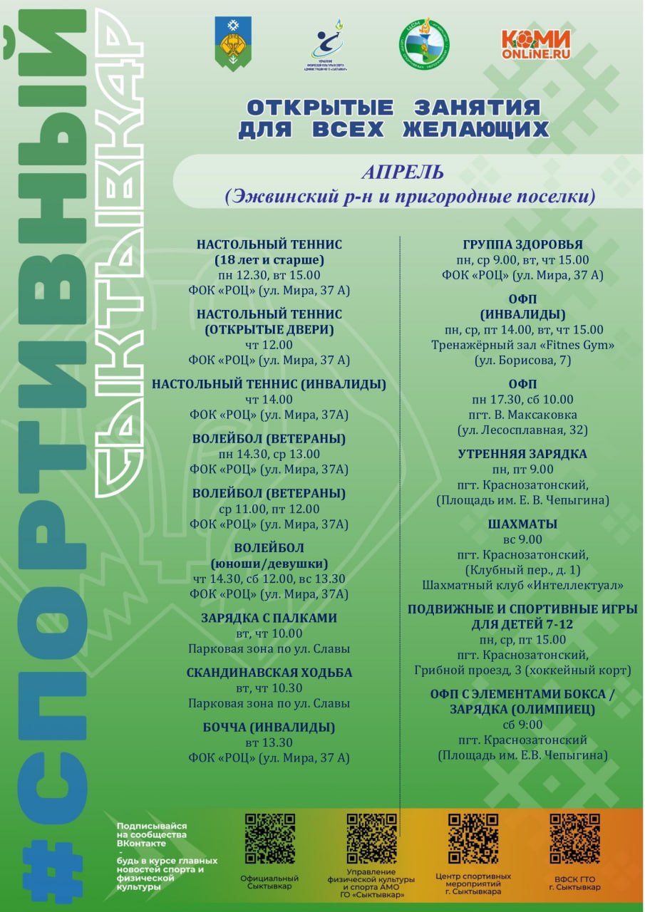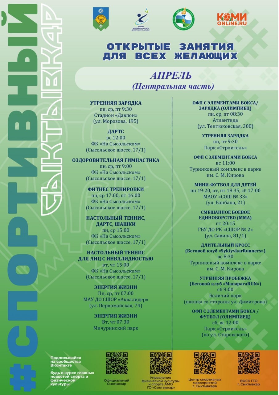 Делимся расписанием бесплатных тренировок в Сыктывкаре на апрель