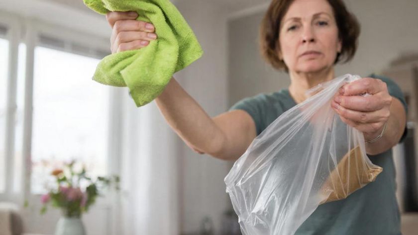 Для «зарядки» тряпки берем обычный полиэтиленовый пакет или шерстяную ткань. Несколько активных движений – и тряпка и становится магнитом для пыли.
