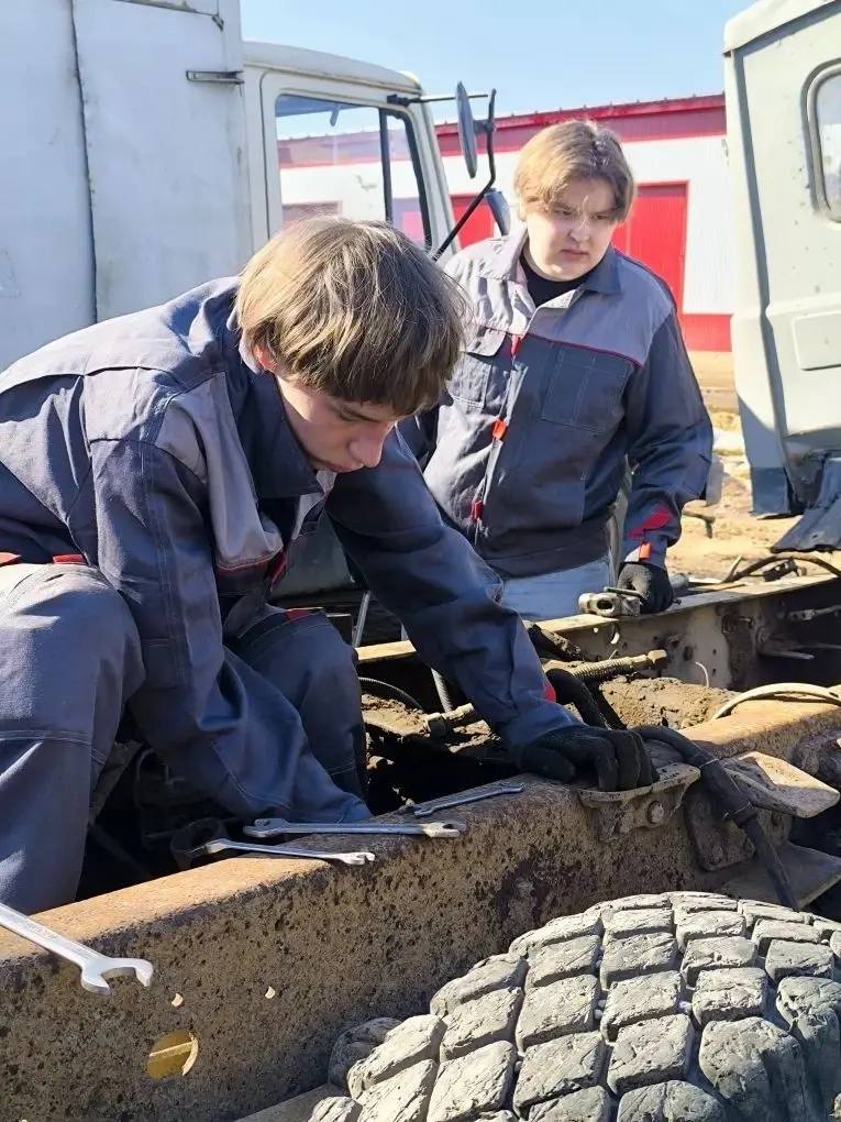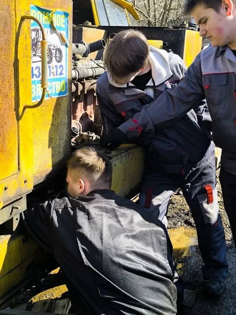 Ребята разбирают устаревшую технику. Детали пускают в дело для ремонта текущих машин. Это отличная школа: изучить агрегаты «изнутри», научиться демонтажу и понять, как рационально использовать ресурсы.