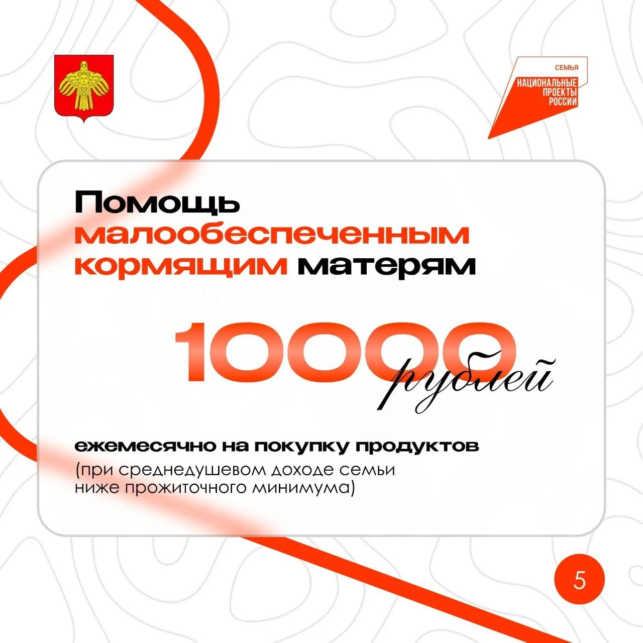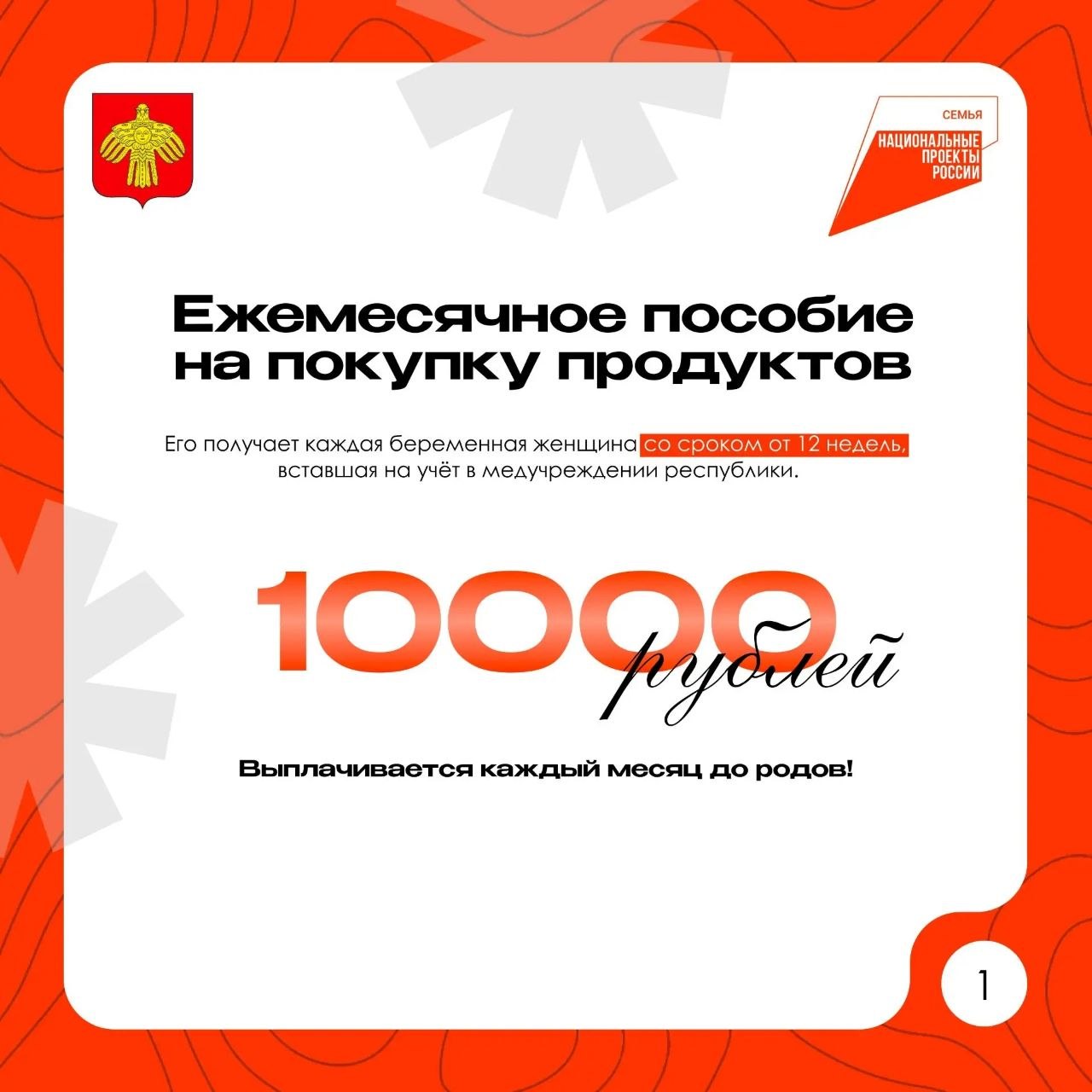 Ежемесячное пособие на покупку продуктов – 10 000 рублей