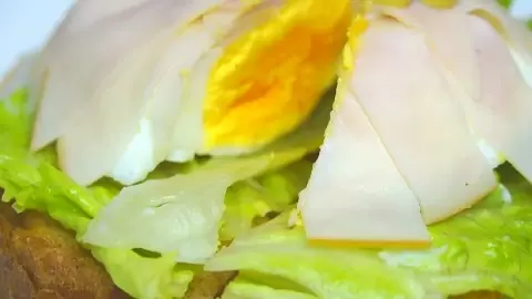 Когда яйцо будет готово, нужно аккуратно выложить его на поджаренный хлеб, посолить по вкусу и добавить лист салата. Затем на самом верху — нарезанная колбаса. Для финального акцента можно добавить немного горчицы — она придаст блюду пикантности и завершенность.