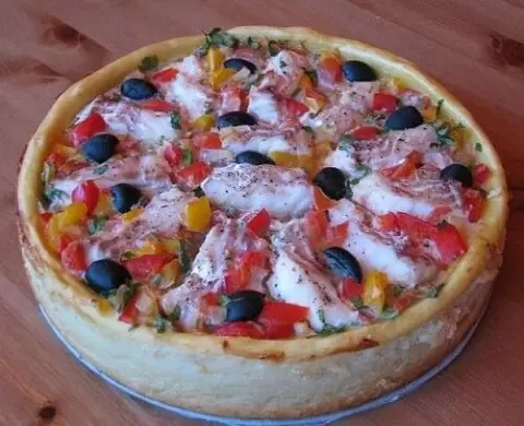 Пока тесто готовится в духовке, можно заняться овощами. Лук обжарьте в оливковом масле, добавьте нарезанные перцы и очищенные от семян помидоры. Обжаривайте смесь до мягкости и добавьте специи по вкусу. Затем выложите овощную начинку в картофельную тарелку, сверху разместите нарезанное филе рыбы и украсьте половинками маслин. Запекайте при температуре 200°C до готовности рыбы. Блюдо будет вкусным как в горячем, так и в холодном виде.