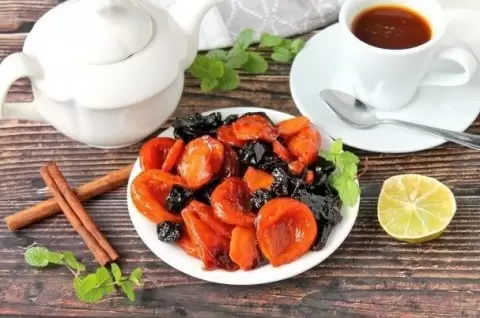 1. В глубокой миске соедините курагу, чернослив и изюм. Залейте их кипятком и оставьте на 15 минут. После этого слейте воду и промойте сухофрукты теплой водой, чтобы избавиться от лишней жидкости.