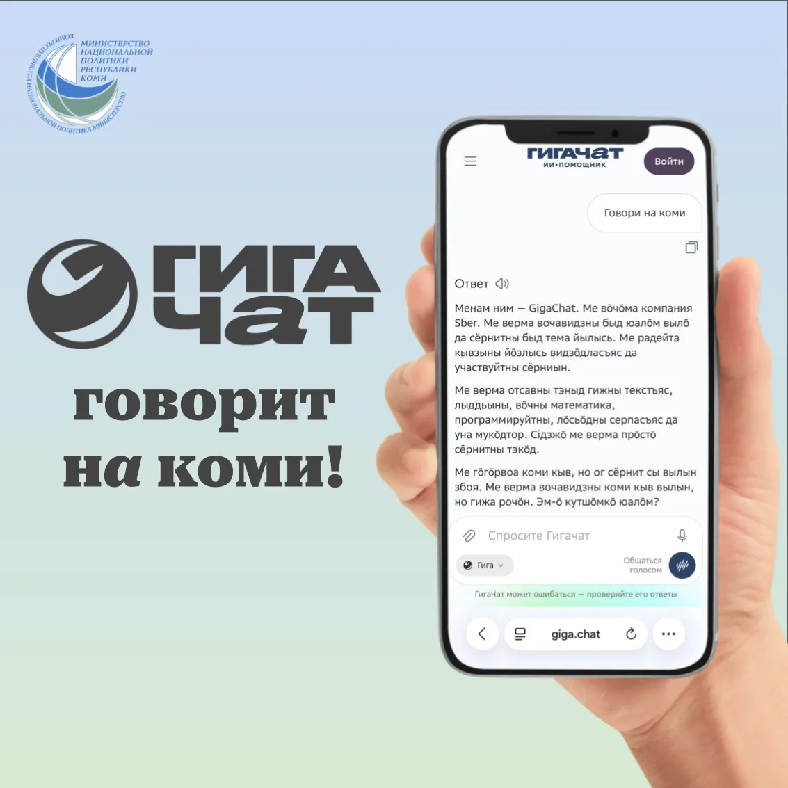 Интеллектуальный помощник ГигаЧат от Сбера официально освоил коми язык.