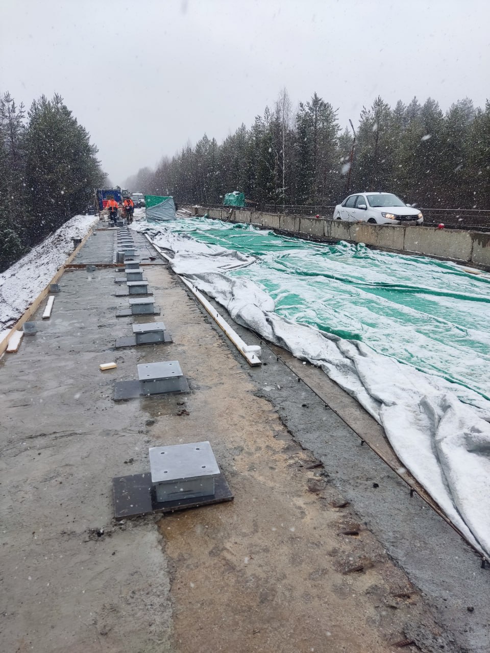Сейчас идёт подготовка к устройству выравнивающего слоя из бетона, после чего планируется выполнить гидроизоляцию и защитный слой мостового полотна.