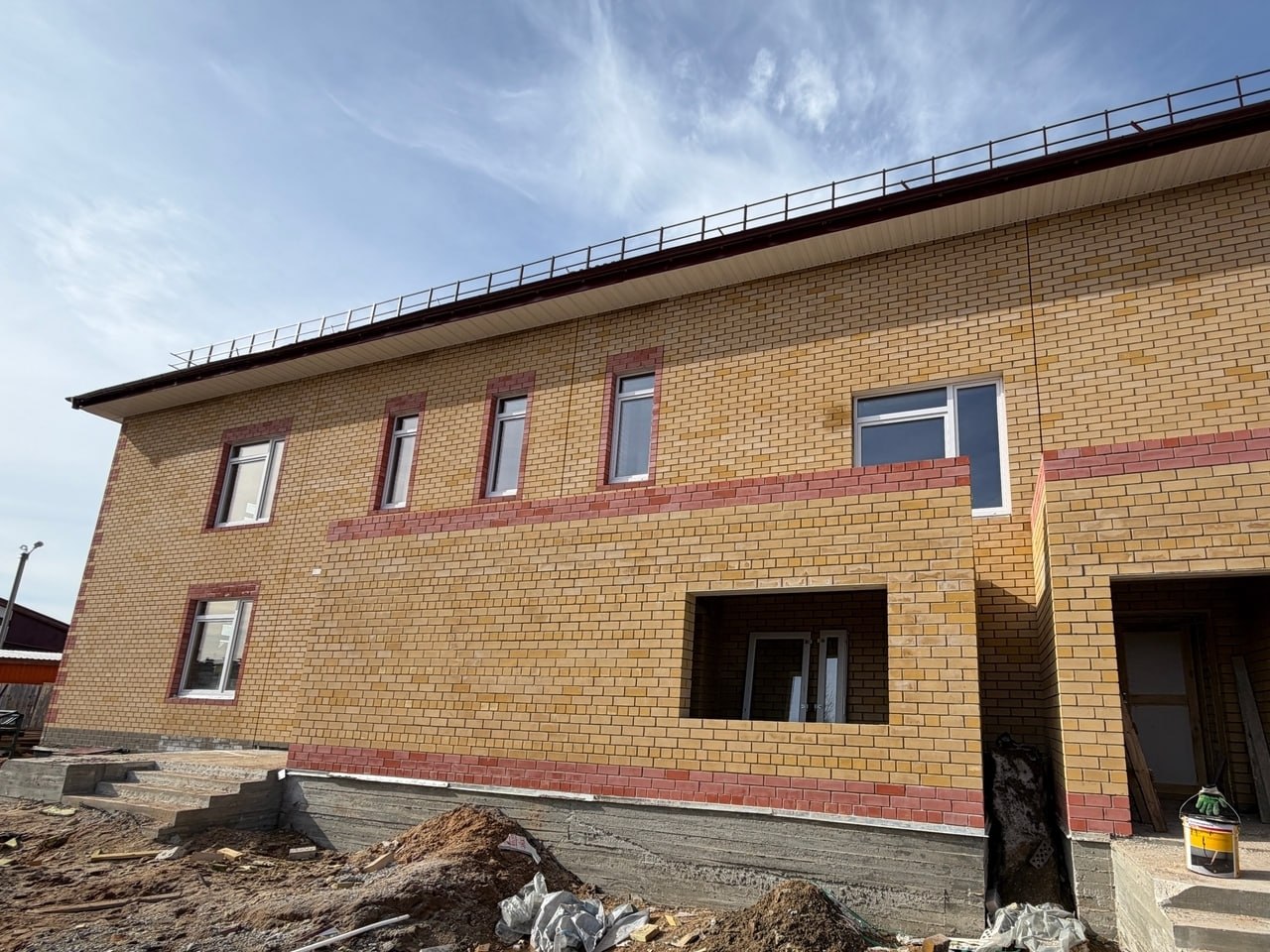 — полностью возведён конструктив здания, завершён монтаж кровли и окон;