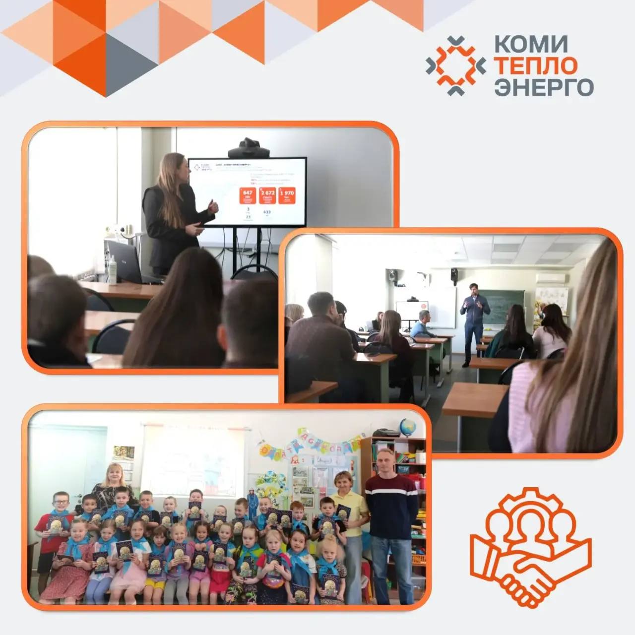 энергоурок для воспитанников детского сада № 13. Рассказали ребятам, как правильно пользоваться электроприборами, откуда в квартирах берётся тепло и свет, показали мультфильмы с советами по безопасности;