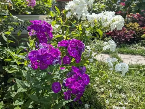 Как правило, в это время начинает распускаться много растений, что позволяет продлить радость от цветения. Например, флоксы радуют своим многообразием. Белый флокс, распустившийся в этом году, прекрасно вписывается в дизайнерские группы, что позволяет создать гармоничные комбинации. После размножения каждый сорт расцветает в своем ритме, и это создает необычные цветовые сочетания.