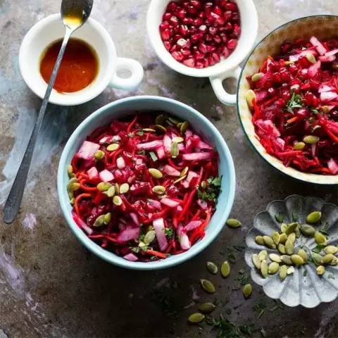 Салат из свеклы и граната удивляет своим сочетанием вкусов — сладость свеклы прекрасно балансирует с кисленькими гранатовыми зернами. Это легкое и освежающее блюдо подходит как для повседневного ужина, так и для праздничного стола. Срок приготовления составляет всего 20 минут (не учитывая время на варку свеклы), а его калорийность — 120 ккал на 100 г. Давайте рассмотрим, как легко можно создать этот кулинарный шедевр.