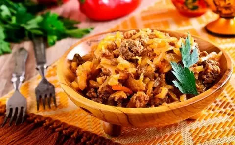 Капуста с мясом и грибами