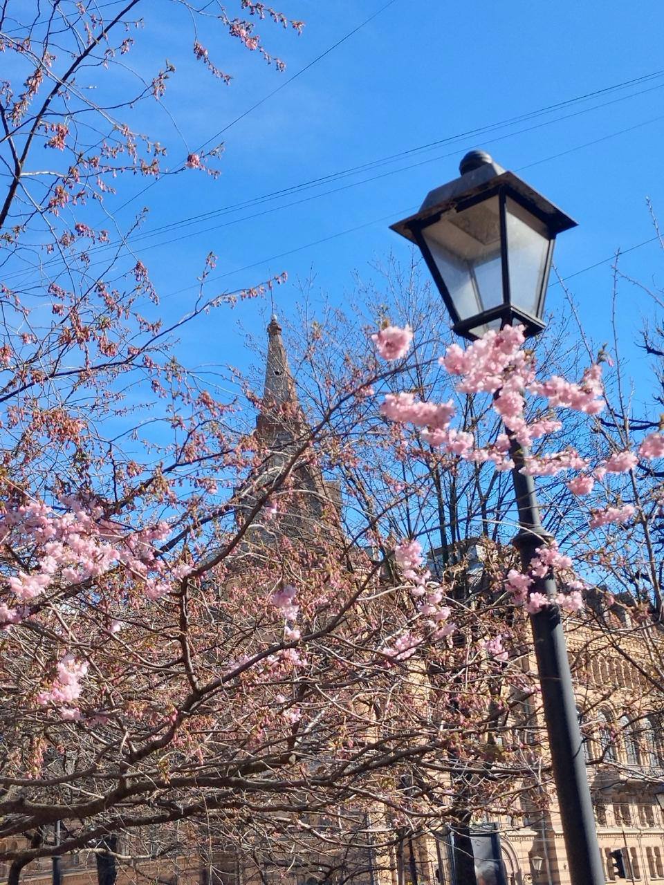 Красота дня. Сакура зацвела в саду Дружбы на Литейном в Санкт-Петербурге.