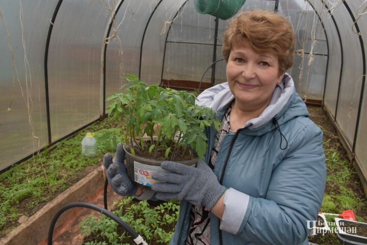 В теплице 3 на 6 метров она размещает 34 корня помидоров, 4 огурца и 6 кустов болгарского перца. Но это еще не все — на открытом воздухе готовятся занять свои места высокорослые красавцы.