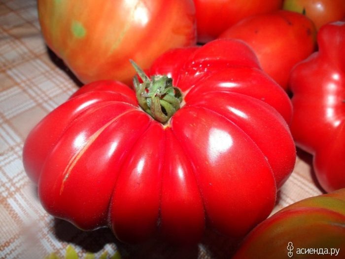 Плоды массой 250–500 г формируют кистями, требуют подвязки и аккуратной формировки. Вкус — с лёгкой сладостью и легкой кислинкой, без резкой горчинки. Крупные плоды идеальны для конечного трёхконтурного использования: свежие ломтики в салатах, густые соусы и пасты, а также заготовки на зиму.