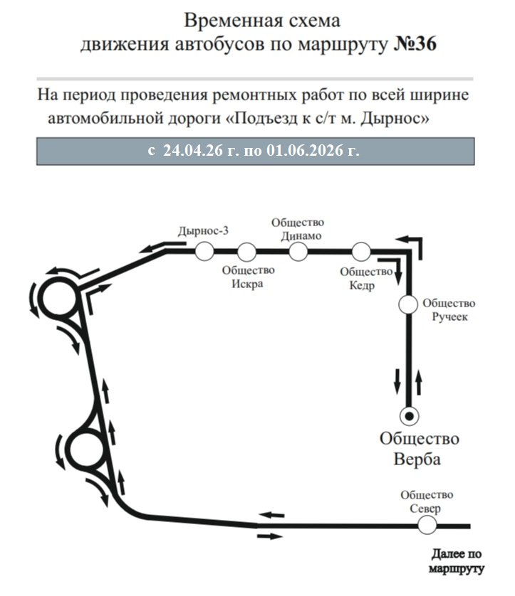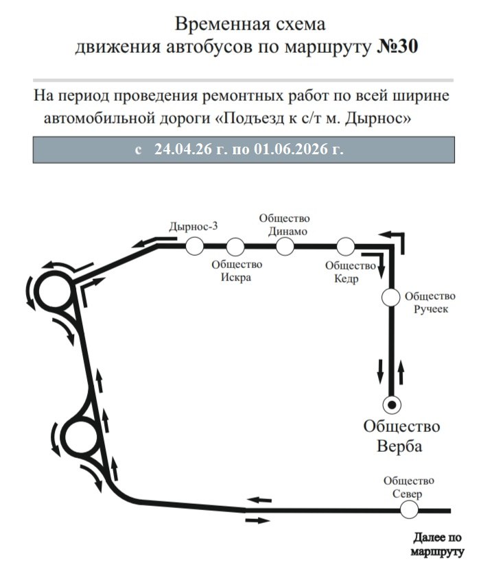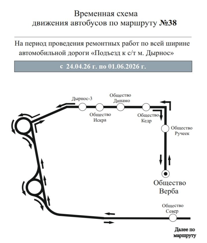 На время ремонта движение перекроют по всей ширине. Автобусы №30, 36, 38 поедут в объезд. На этот период у маршрутов конечной остановкой будет «Общество Верба».